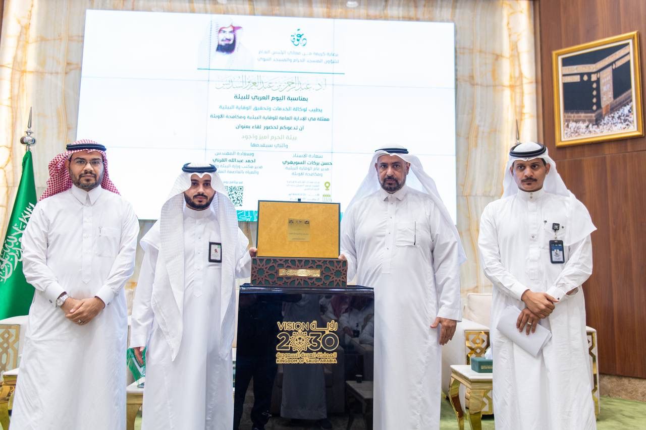 قامت وكالة الخدمات وتحقيق الوقاية البيئية، ممثلة في إدارة الوقاية البيئية ومكافحة الأوبئة بالمسجد الحرام، بإقامة ندوة بعنوان: (بيئة الحرم أميز وأجود )، والتي تأتي بالتزامن مع اليوم العربي للبيئة (2022) وقد قدم الندوة مدير عام الوقاية البيئية ومكافحة الأوبئة ، حسن بركات السويهري، ومدير مكتب وزارة البيئة والمياه والزراعة بالعاصمة المقدسة المهندس أحمد عبدالله القرني.