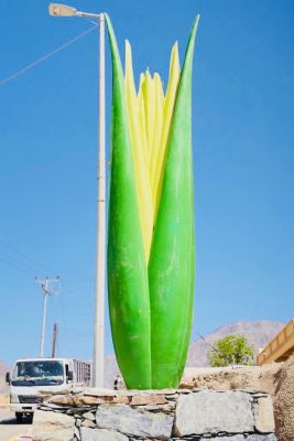 وقد تم تركيب المجسمات الجمالية التي تأخذ شكل زهرة نبات الكادي الشهيرة وعددها ثلاث مجسمات توزعت على عدة مواقع منتشرة على مداخل القرية من الشارع العام طريق الملك فهد وصولاً إلى وسط القرية.