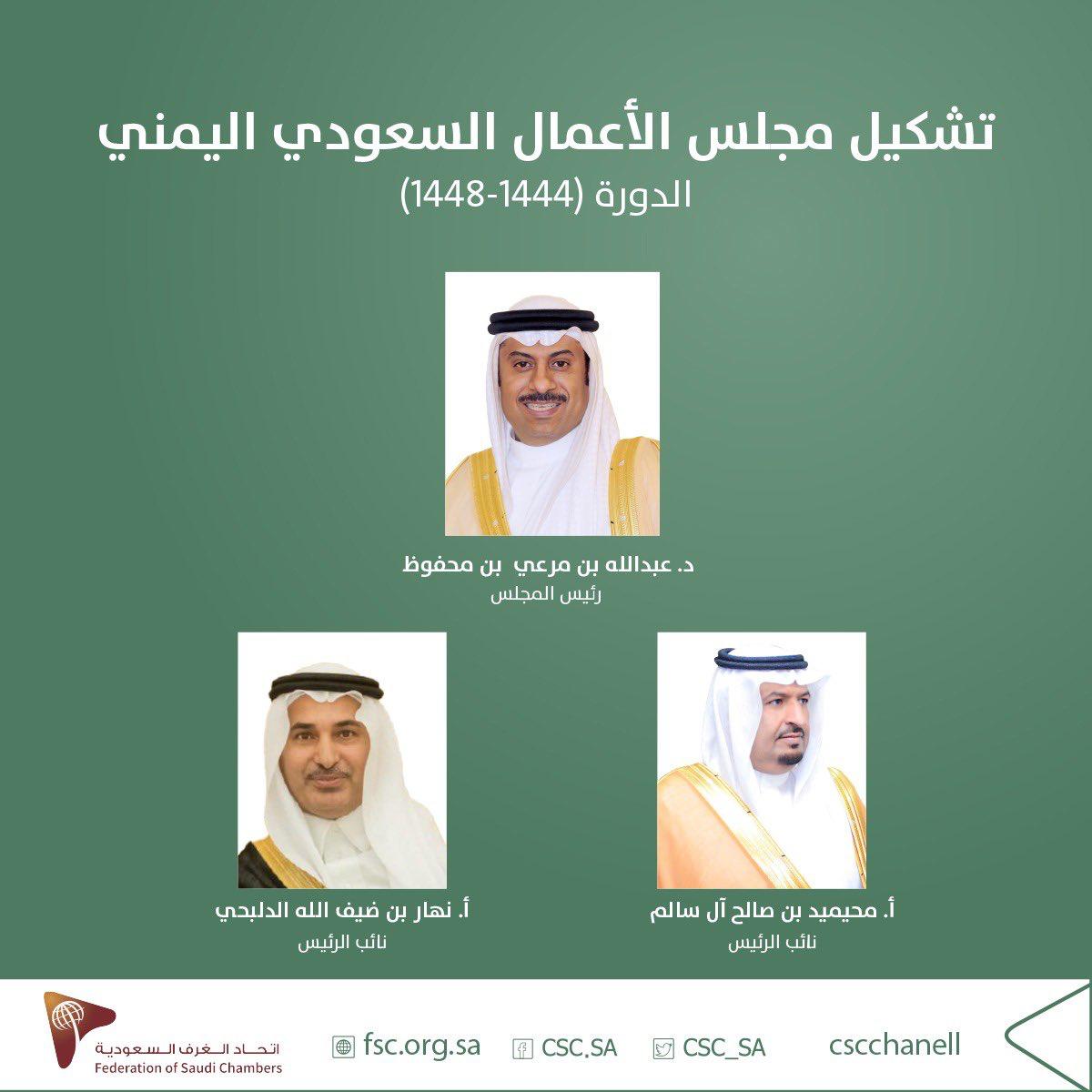 أعلن اتحاد الغرف السعودية اعتماد التشكيل النهائي لمجلس الأعمال السعودي اليمني في دورته الجديدة (1444 – 1448) وتسمية الدكتور عبدالله بن مرعي بن محفوظ رئيساً للمجلس وكل من محيميد بن صالح آل سالم ونهار بن ضيف الله الدلبحي نائبين للرئيس وذلك تعزيزاً للعلاقات الاقتصادية السعودية اليمنية وأوضح رئيس مجلس الأعمال السعودي اليمني عبد الله بن محفوظ أن تشكيل هذا المجلس يأتي في وقت مهم لإعادة الاستثمارات بين البلدين وتأكيدا لدور المملكة في مشاريع التنمية الاقتصادية باليمن مبيناً أن العمل جاري على إعداد خطة عمل المجلس واستكمال دعوة بقية الأعضاء والعمل مع الجانب اليمني للبدء بمناقشة الفرص الاستثمارية المتاحة وأكد بن محفوظ أن العلاقات السعودية اليمنية تحظى باهتمام خاص وعالي الأهمية من القيادة السياسية في البلدين وأن القطاع الخاص أمامه فرصة لاستثمار هذا الدعم والاهتمام وترجمته الى مشاريع مشتركة تعود بالنفع على الشعبين الشقيقين .
