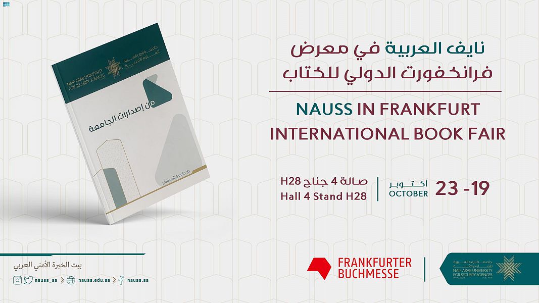 أعلنت جامعة نايف العربية للعلوم الأمنية مشاركتها في فعاليات معرض فرانكفورت الدولي للكتاب من 19 – 23 أكتوبر 2022، في مدينة فرانكفورت الألمانية.