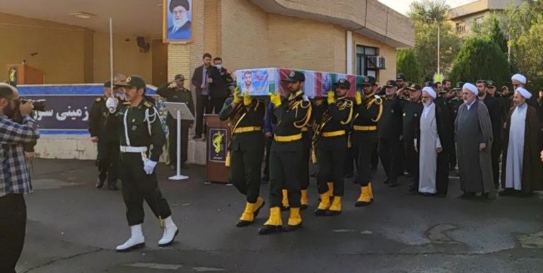 واستغل قائد اللواء حسين سلامي، مراسم تشييع ضحايا هجوم داعش على مرقد شاه جراغ ليطلق سلسلة من التهديدات والاتهامات ضد المحتجين.