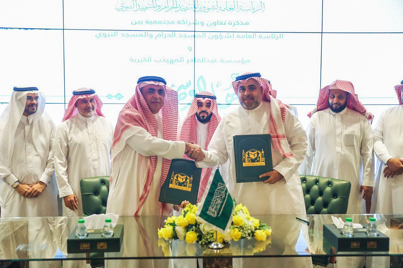وقعت الرئاسة العامة لشؤون المسجد الحرام والمسجد النبوي، اتفاقية تعاون وشراكة مجتمعية مع مؤسسة عبدالقادر المهيدب لخدمة المجتمع.