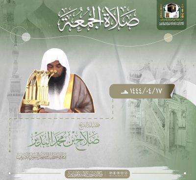 اوضحت الرئاسة العامة لشؤون المسجد الحرام والمسجد النبوي، وعبر وكالة شؤون الأئمة والمؤذنين ، ممثلة في إدارة شؤون الأئمة ، بان امام وخطيب الجمعة 1444/04/17 بالمسجد الحرام ، الدكتور اسامة عبدالله خياط، فيما سيكون امام وخطيب الجمعة بالمسجد النبوي ، الدكتور صلاح محمد البدير.