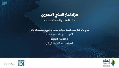 “إنفاذ” يشرف على مزاد لمار العلني لبيع عقارات بالرياض