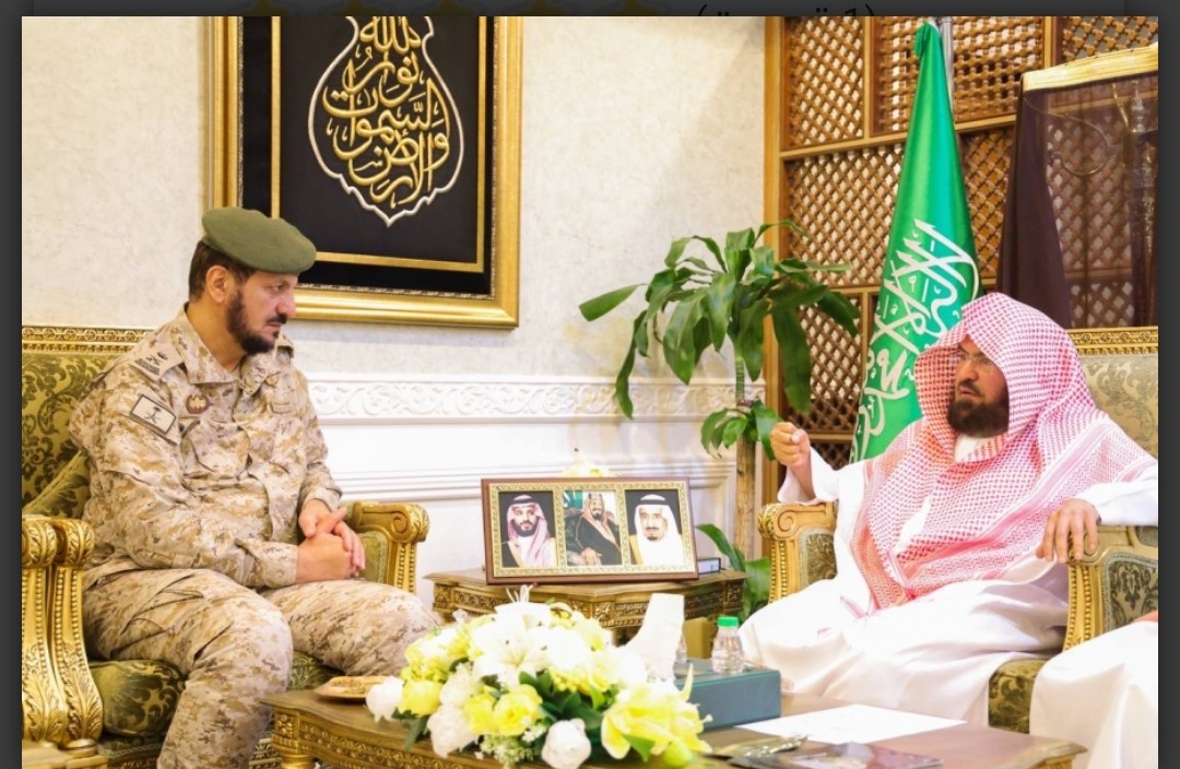التقى الرئيس العام لشؤون المسجد الحرام والمسجد النبوي الدكتور عبد الرحمن بن عبد العزيز السديس، بأعضاء الإدارة العامة للشؤون الدينية للقوات المسلحة، والتي تضم كلا من اللواء مسفر بن حسن آل عيسى، والعميد عبدالعزيز الدريس وعدد من منسوبي وزارة الدفاع ، بحضور مساعد الرئيس العام للحوكمة والشؤون التطويرية المشرف العام على مكتب الرئيس العام لشؤون الحرمين الشريفين، الدكتور عبدالوهاب بن عبدالله الرسيني.