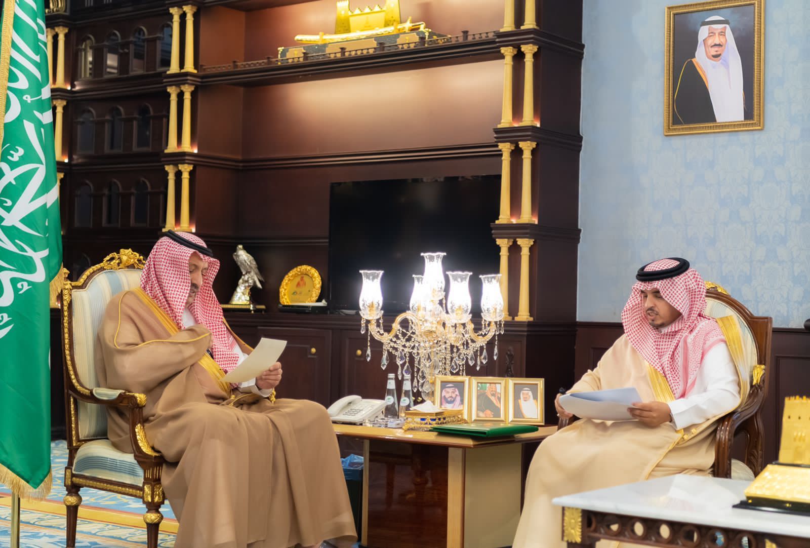 واطلع سموه على تقرير الأعمال المنجزة وسير العمل بالجهات الحكومية بالمحافظة والمشاريع التنموية والاستثمارية والبرامج المنفذة خلال الفترة الماضية .