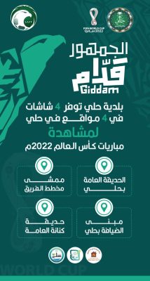 القنفذة _ حلي | شرعت بلدية مركز حلي جنوب محافظة القنفذة بتجهيز أربع مواقع لمشاهدة مباريات كأس العالم 2022