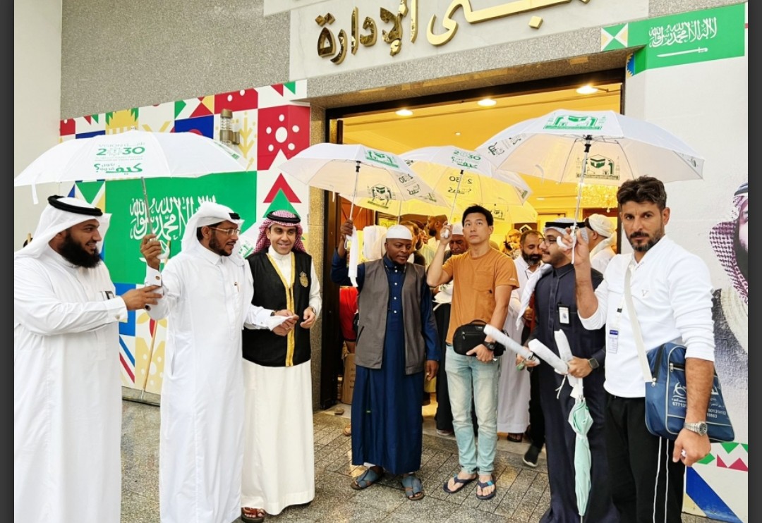 والمعتمرين داعين الله أن يجزي قادة هذه البلاد خير الجزاء على كل ما يقدمونه في خدمة الحرمين الشريفين والإسلام والمسلمين ،وفي نهاية الزيارة تم توديعهم وتوزيع عدداً من الشماسيات وذلك تزامناً مع هطول الامطار على العاصمة المقدسة ولله الحمد .