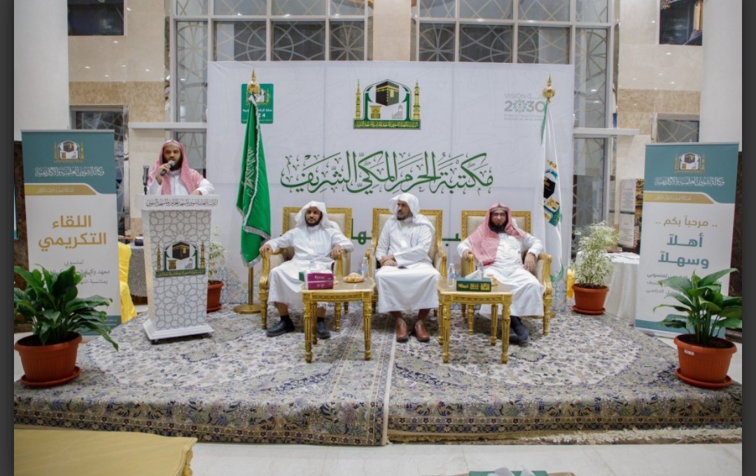 نظمت رئاسة شؤون الحرمين، وعبر وكالة الشؤون العلمية والأكاديمية، الحفل الختامي للفصل الدراسي الأول 1444 بالتعاون مع وكالة المكتبات والشؤون الثقافية ،ممثلة بإدارة العلاقات العامة بالإدارة العامة للبرامج والفعاليات،حيث اقيم الحفل في بهو مكتبة الحرم المكي الشريف ببطحاء قريش، وحضر الحفل وكيل الرئيس العام للمكتبات والشؤون الثقافية، والوكيل المساعد لشؤون المسجد الحرام للتوجيه والإرشاد، ورئيس قسم العقيدة بكلية الحرم المكي الشريف، ووكيل الشؤون التعليمية ووكيل شؤون الطلاب بمعهد الحرم المكي الشريف ونخبة من أعضاء الكادر التعليمي والإداري بمعهد وكلية الحرم المكي الشريف.