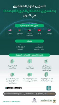 أعلنت وزارة الحج والعمرة عن إتاحة تسجيل الخصائص الحيوية “البصمة” للمعتمرين القادمين من 5 دول لإتمام إجراءات إصدار تأشيرات العمرة إلكترونيًا قبل قدومهم إلى مكة المكرمة والمدينة المنورة وذلك في إطار الجهود المبذولة من كافة القطاعات الحكومية لتسهيل إجراءات قدوم قاصدي الحرمين الشريفين ورفع جودة الخدمات المُقدمة لهم في منافذ المملكة وإثراء تجربتهم الدينية والثقافية تحقيقًا لمستهدفات برامج رؤية السعودية 2030 وأوضحت الوزارة أن تسجيل “البصمة” يشمل حاليًا جميع ضيوف الرحمن القادمين من (المملكة المتحدة،جمهورية تونس، المقيمين في دولة الكويت، ومملكة ماليزيا الاتحادية، جمهورية بنجلاديش) ، مشيرةً إلى أن إتمام إجراءات التسجيل تتم من خلال تطبيق (Saudi Visa Bio) للهواتف الذكية بالتسجيل الذاتي للخصائص الحيوية للمعتمرين من بلد ضيف الرحمن ولفتت الوزارة إلى أن تسجيل “البصمة” يشمل (الوجه والعين وأصابع اليدين) وتصوير جواز السفر ذاتيًا عبر التطبيق مما يُمكن طالبي تأشيرة العمرة من تسجيل الخصائص الحيوية إلكترونيًا من قِبل المعتمرين أنفسهم دون الحاجة إلى مراجعة السفارات والقنصليات التابعة للمملكة أو مراكز إصدار التأشيرات في تلك الدول وتسهيل دخولهم عبر جميع منافذ المملكة خلال وقت وجهد أقل، وبإجراءات ميسرة ، يُذكر أن تسجيل السمات الحيوية على التطبيق يتم عبر 4 خطوات تشمل: القراءة الألية لجواز السفر، تحديد نوع التأشيرة، التقاط صورة الوجه، والتقاط بصمات أصابع اليد، ويأتي تسهيل إجراءات تسجيل الخصائص الحيوية في إطار الجهود المبذولة من كافة القطاعات الحكومية في المملكة لخدمة ضيوف الرحمن كما تُعد المملكة أول دولة تستخدم تسجيل السمات الحيوية لراغبي التأشيرات عبر الهواتف الذكية .