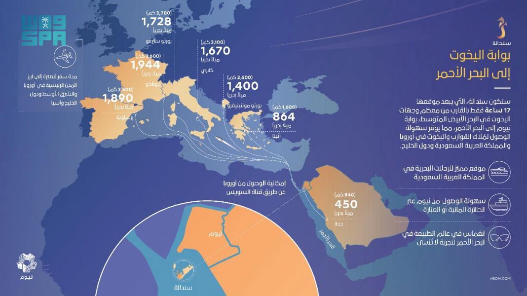 وأضاف سموه: “ستكون سندالة أول وجهة بحرية فاخرة ونوادي اليخوت على البحر الأحمر في نيوم، كما ستكون بوابة للسياحة العالمية في البحر الأحمر والمنطقة، تتميز بموقع فريد وطبيعة ساحرة تؤهلانها أن تكون منصة للسياحة البحرية الفاخرة على مستوى العالم”.