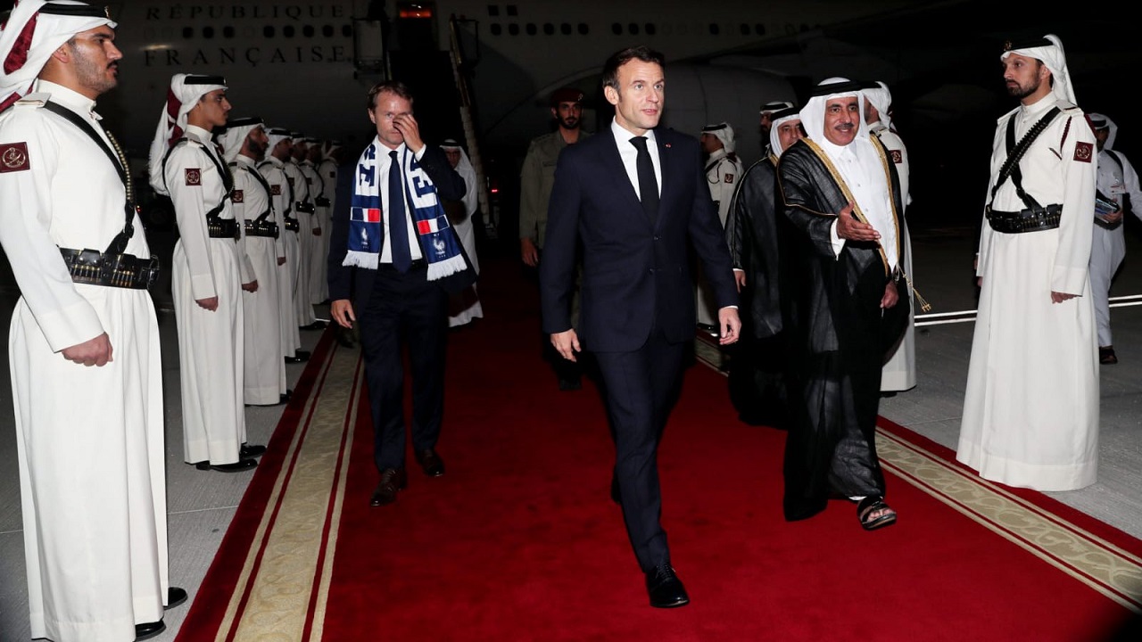 وأفادت وكالة الأنباء القطرية، بأن الرئيس الفرنسي وصل الدوحة، اليوم، لحضور جانب من مباريات بطولة كأس العالم FIFA قطر 2022.
