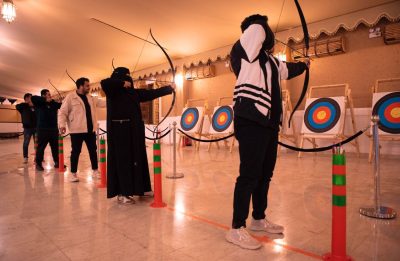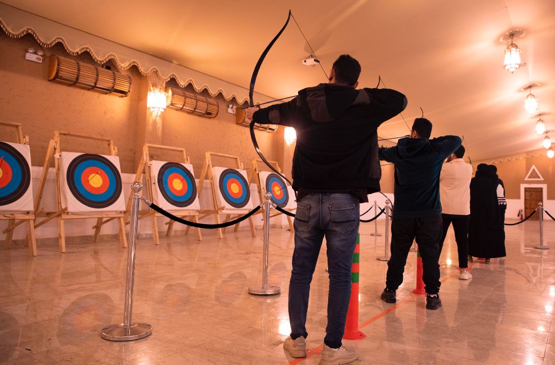 حظيت فعالية (عيش التجربة) التي خصصت لتعلم لعبة السهام وقوانينها، تفاعلاً كبيراً من زوار موسم حائل 2022، والتي وضعت في وسط قاعة المغواة، وحددت أسعارها بـ20 ريالاً، حيث يمكنك التعلُّم لمدة عشر دقائق وعبر لاعبين سابقين في اللعبة. وتبدأ الطريقة أولاً بشرح نظري لعملية مسك السهام والأمتار المحددة في كل فئة وطريقة القبضة الجيدة؛ التي تعتبر الطريقة السليمة في اللعبة ومعرفة ثبات الذراع والكتف من أجل الرمية الثابتة، وتبدأ الفعالية من الساعة الرابعة عصراً حتى الساعة الحادية عشرة، حيث تم وضع خمسة ألواح للزوار من أجل التدرب عليها. وذكر عبدالرحمن العتيق أنه حرص على التواجد وحضور الفعالية؛ كونه من محبي لعبة السهام، وسبق أن مارسها في مدينة الرياض في فترة سابقة، وقال: «عرفت عن الفعالية من مواقع التواصل الاجتماعي، حيث حضرت مع أحد الأصدقاء، واستمتعنا بالفعالية وطريقة التعلّم عبر الشرح النظري والميداني، حيث قمنا بالتصويت عدة مرات، وبفضل المدربين أجدَنا نوعاً ما الطريقة المناسبة». وأضاف: «للأسف بعض الرياضات نفتقد للتدريب عليها بسبب بعض المعوقات، ولكن موسم حائل والمنظمين عليها أتاحوا لنا فرصة في لعبة السهام؛ التي أعتبرها من الأهداف الجميلة في مثل هذه التجمعات»، وزاد: «سعدت في الفعالية بمدى اهتمام الزوار باللعبة والتوقف من أجل ممارسة لعبة السهام والبحث عن تفاصيلها، وهذا من الممكن أن ينتج لنا جيلاً من الأبطال في اللعبة بالمستقبل القريب».