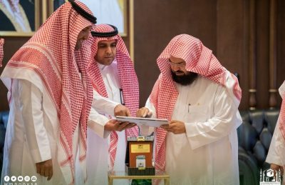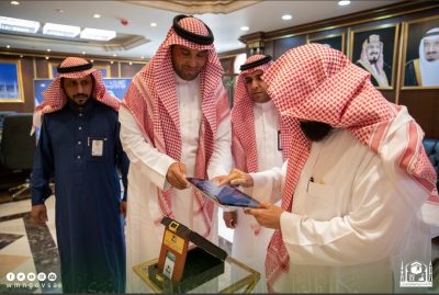 دشن الرئيس العام لشؤون المسجد الحرام والمسجد النبوي الدكتور عبدالرحمن بن عبدالعزيز السديس (الحقيبة الرقمية) لمكتبة المسجد النبوي.