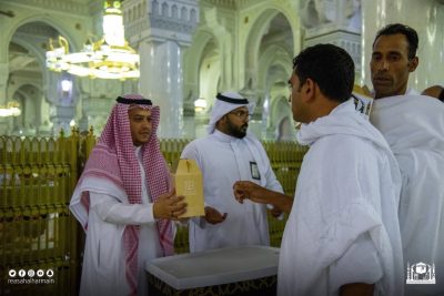 اطلقت رئاسة شؤون الحرمين الشريفين ، وعبر وكالة الحوكمة والشؤون القانونية ممثلة بالإدارة العامة للحج والعمرة ،مبادرة (وجبة معتمر) لتوزيعها على المعتمرين الصائمين مغرب يومي الاثنين والخميس اسبوعيا بالمسجد الحرام.