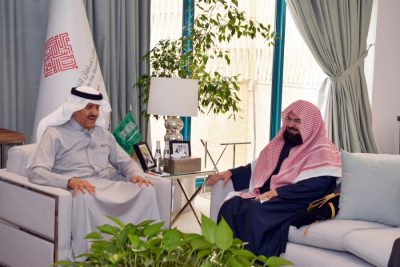 استقبل رئيس مجلس أمناء مركز الملك سلمان للأشخاص ذوي الإعاقة صاحب السمو الملكي الأمير سلطان بن سلمان بن عبدالعزيز ، الرئيس العام لشؤون المسجد الحرام والمسجد النبوي الشيخ الدكتور عبدالرحمن بن عبدالعزيز السديس وذلك في مقر المركز بمدينة الرياض اليوم الثلاثاء.