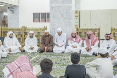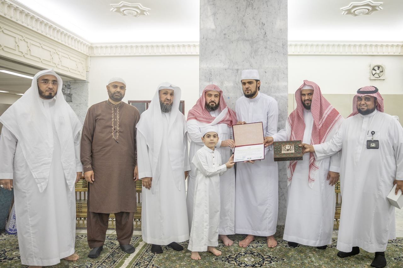 احتفت رئاسة شؤون الحرمين الشريفين ، وعبر وكالة الشؤون التوجيهية والإرشادية ممثلة في الإدارة العامة للحلقات والمقرأة الإلكترونية بطالبين، أتما عرض القرآن الكريم كاملاً، في مسار العرض والمراجعة، وهما: الطالب معراج الدين بن أحمد بن عبد القادر بن عبد الرحيم البخاري، من جمهورية طاجكيستان، والطالب حافظ محبوب أحمد من جمهورية باكستان.