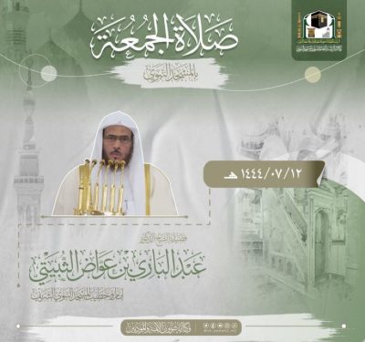 وامام وخطيب الجمعة 12 رجب 1444هـ بالمسجد بالمسجد النبوي الدكتور عبدالباري عواض الثبيتي.