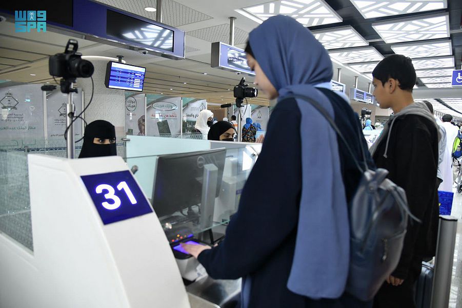 جوازات مطارات جدة والرياض والمدينة المنورة تستقبل أوائل المستفيدين من تأشيرة الزيارة للقادمين (جوًا) إلكترونيًا