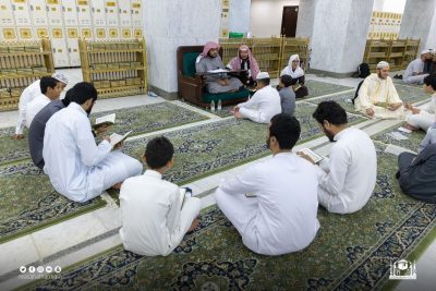 وذكر الوكيل المساعد للشؤون التوجيهية والإرشادية الشيخ إبراهيم بن محمد شيبه، أن حلقات تحفيظ القران الكريم، تُقام في بدروم توسعة الملك فهد لفئة (الطلاب) الدخول لها يكون من الأبواب (75، 76، 77، 81، 82، 83)، وفي الدور الاول توسعة الملك فهد مصلى (74) للنساء- تلطالبات- وتقام فيه من بعد صلاة الفجر إلى وقت الظهر ، وتنفذ كذلك في التوسعة الشمالية، وخصص لها باب رقم (114) من بعد صلاة الظهر إلى وقت صلاة العشاء على مدى (4) فترات، وعبر عدد من المسارات التي تهدف إلى تأصيل ونشر وتعليم الطرق الصحيحة لحفظ القرآن الكريم بمميزات منها إمكانية المتابعة بعد إنتهاء البرنامج لمن يرغب, والمرونة والتيسير في بيئة تعليمية تربوية فريدة وميسرة.
