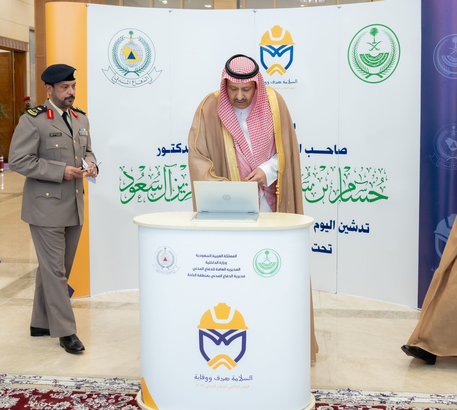 الباحة – دشن صاحب السمو الملكي الأمير الدكتور حسام بن سعود بن عبدالعزيز أمير منطقة الباحة بحضور مدير الدفاع المدني بالمنطقة اللواء هاني بن ابراهيم الزرقي. فعاليات اليوم العالمي للدفاع المدني لهذا العام 2023م تحت شعار “السلامة هدف ووقاية”