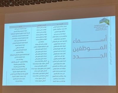 نظَّمت الإدارة العامه للموارد البشرية ممثلةً في إدارة التواصل الداخلي بأمانة العاصمة المقدسة “اليوم” برنامجاً تعريفياً لتهيئة الموظفين الجدد بأمانة العاصمة المقدسة والبالغ عددهم ٢٣ موظفاً وموظفة، بحضور مدير عام الموارد البشرية أحلام بنت كامل العميري ومدراء الإدارات ورؤساء الأقسام، وذلك بمسرح الأمانة.