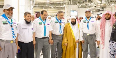 مكة المكرمة – أوصى معالي الرئيس العام لشؤون المسجد الحرام والمسجد النبوي الشيخ الدكتور عبدالرحمن بن عبدالعزيز السديس فريق الكشافة بالتعاون البنّاء في خدمة ضيوف الرحمن والتفاني في خدمتهم وتقديم كل ما يسهل عليهم أداء مناسكهم .