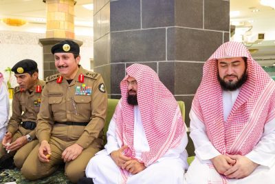 مكة المكرمة – التقى معالي الرئيس العام لشؤون المسجد الحرام والمسجد النبوي الشيخ الدكتور عبدالرحمن بن عبدالعزيز السديس اليوم الأحد معالي مدير الأمن العام الفريق محمد بن عبدالله البسامي، ومدير شرطة منطقة مكة المكرمة اللواء صالح بن عواض الجابري، وقائد القوات الخاصة لأمن الحج والعمرة العميد الدكتور فواز بن عبدالواحد المتيهي، بحضور فضيلة إمام وخطيب المسجد الحرام الشيخ الدكتور بندر بن عبدالعزيز بليلة عضو هيئة كبار العلماء وعدد من قيادات الرئاسة.