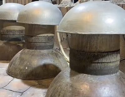 نبداء بوزن الورد الذي يأتي الينا في المصنع من المزارعين ومن ثم الإنتقال إلى المعمل والقدور النحاس المستخدمة في عملية الإنتاج وبعد عملية وزن المواد يبدأ عملية الغليان بإحتراف في ذلك ويبدأ التقطير عبر مواصير إلى القوارير الخاصة بذلك.