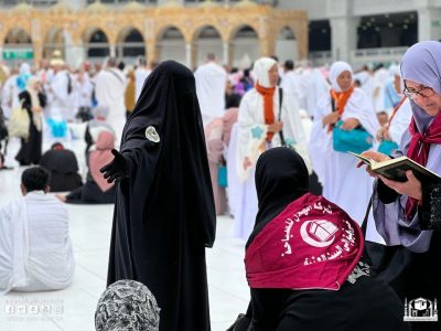 وفي الجانب النسائي عملت الوكالات النسائية على رفع نسبة الوعي للقاصدات بالتوجيه الديني بكل مهنية واحترافية ونشر الباركودات الخاصة بالإفتاء وإصدارات الرئاسة، للاستفادة منها والعمل على إتمام الصفوف وتفعيلِ حلقات قرآنية لمختلف الفئات من ضيوف الرحمن في مصليات توسعة الملك فهد -رحمه الله- الأرضي والعلوي وتوسعة الملك عبدالله وفي مصلى الاعتكاف كذلك تعليم القاصدات التلاوة الصحيحة والتجويد و مراجعة الحفظ، إضافة إلى الاهتمام بالقاصدات من ذوي الإعاقة وكبيرات السن؛ بتقديم الأنشطة والبرامج التي تلائمهن ، كما تم تزويد المصليات بالأعداد الكافية والأحجام المتنوعة من المصاحف والتفاسير ومصاحف تراجم معاني كلمات القرآن الكريم بعدة لغات، وكذلك المصاحف المخصصة للمكفوفات بلغة ( برايل ) داخل المصليات المخصصة للأشخاص ذوات الإعاقة.