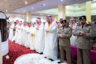 الباحة – أدى صاحب السمو الملكي الأمير الدكتور حسام بن سعود بن عبدالعزيز أمير منطقة الباحة – حفظه الله -، صباح اليوم، صلاة عيد الفطر المبارك مع جموع المصلين الذين اكتظ بهم جامع الملك فهد بمدينة الباحة حيث أمّ المصلين مدير عام الشؤون الاسلامية بالمنطقة الشيخ مرزوق الرويس الذي استهل خطبته بحمد الله والثناء عليه وهنّأ المصلين في خطبته، على ما أفاء به الله على عباده من صيام وقيام وعبادة خلال الشهر الفضيل، سائلاً المولى جلت قدرته أن يتقبل من الجميع طاعاتهم وأعمالهم.