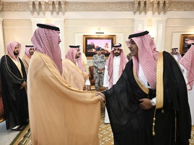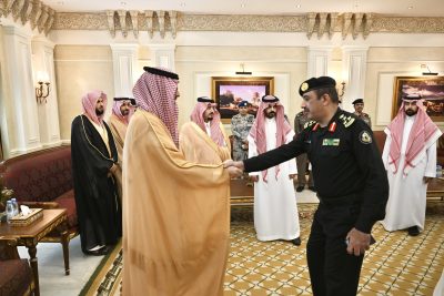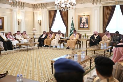 استقبل صاحب السمُو الأمير سعود بن عبدالله بن جلوي محافظ جدة، بمقر المحافظة اليوم, أصحاب الفضيلة والمعالي وعدداً من قيادات القطاعات المدنية والعسكرية الذين قدموا للسلام على سمُوه وتهنئته بعيد الفطر المبارك.
