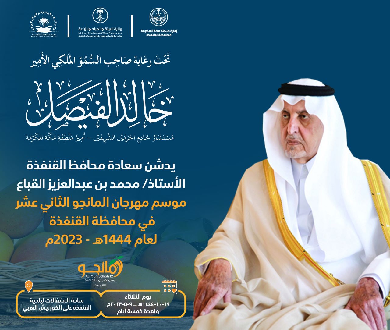 القنفذة _ وائل العتيبي | كشف مدير عام فرع وزارة البيئة والمياه والزراعة بمنطقة مكة المكرمة المهندس ماجد بن عبدالله الخليف، عن موعد انطلاق مهرجان المانجو الثاني عشر بمحافظة القنفذة، والذي ينطلق برعاية أمير المنطقة يوم 19 شوال، وسيدشنه سعادة محافظ القنفذة محمد بن عبدالعزيز القباع وسيمتد لمدة خمسة أيام بساحة الاحتفالات في المركز الحضاري بالكورنيش.