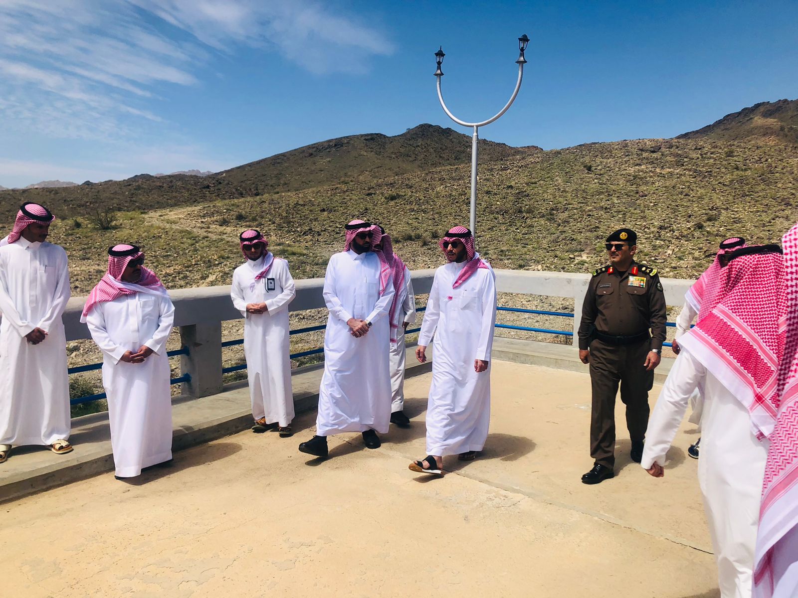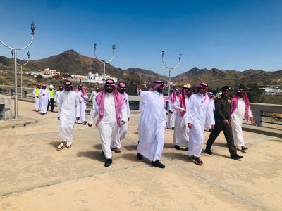 الطائف _ وائل العتيبي | وقف الأمير سعود بن نهار بن سعود بن عبدالعزيز، محافظ الطائف اليوم، على سد عكرمة، يرافقه مساعد مدير شرطة المحافظة اللواء عبدالله الخنفري ومدير فرع وزارة البيئة والمياه والزراعة، المهندس هاني قاضي.