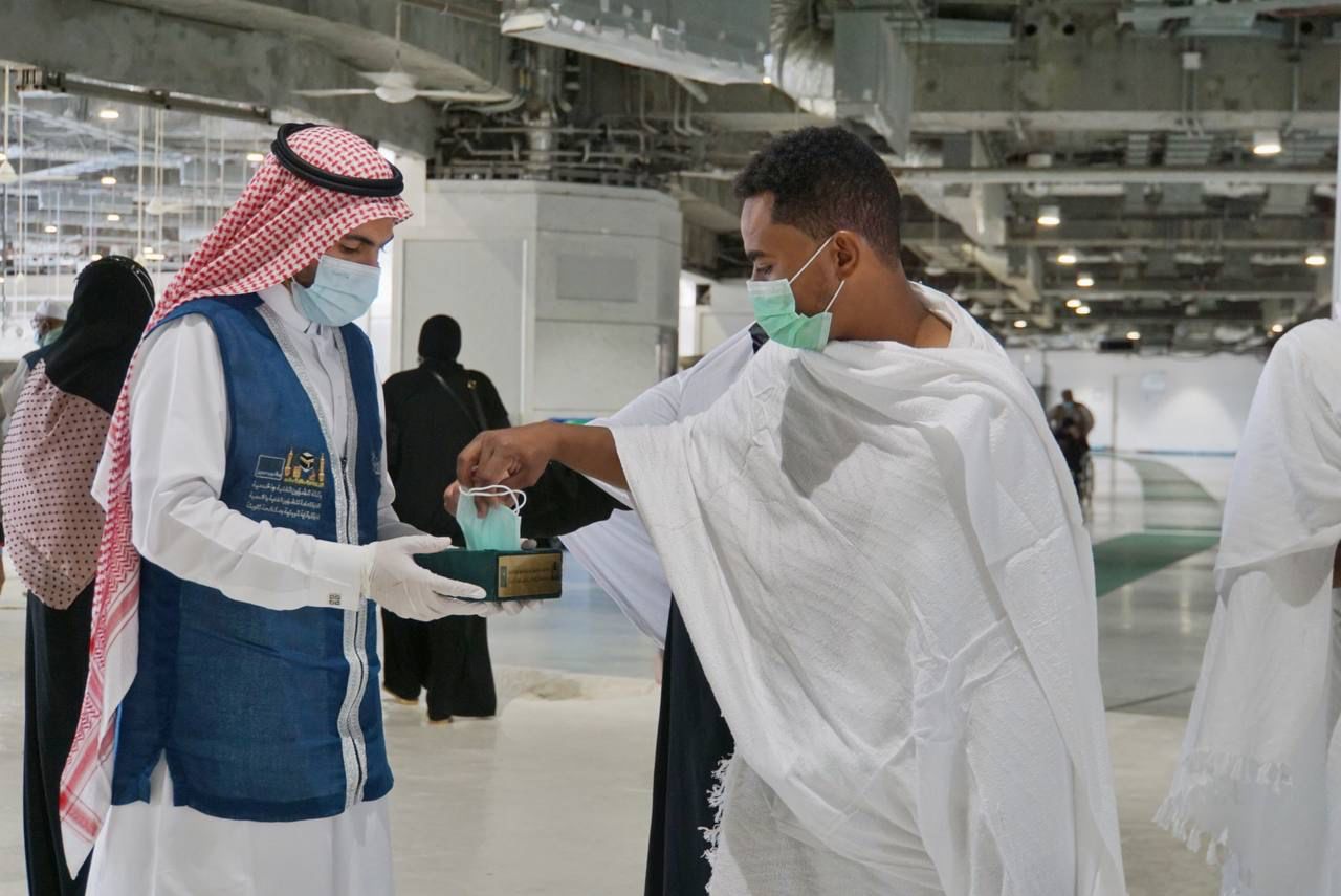 و أوضح مدير عام الوقاية والرعاية الصحية الأستاذ حسن بن بركات السويهري ، أنه من خلال برنامج ” وقايتك .. كمامتك ” والذي يستمر لعامه الثالث بهدف رفع مستوى الوعي لدى قاصدي بيت الله الحرام وأهمية الالتزام بالإجراءات الصحية وإنفاذاً لتوجيهات الرئيس العام لشؤون المسجد الحرام والمسجد النبوي الشيخ الدكتور عبدالرحمن بن عبدالعزيز السديس، في توفير كافة الخدمات الصحية لقاصد بيت الله، فقد تم تخصيص فريق عمل يقوم بتوزيع الكمامات داخل المسجد الحرام حيث يتم توزيع أكثر 1200000 كمامة لضيوف الرحمن.
