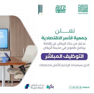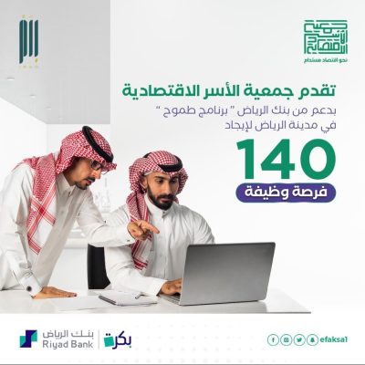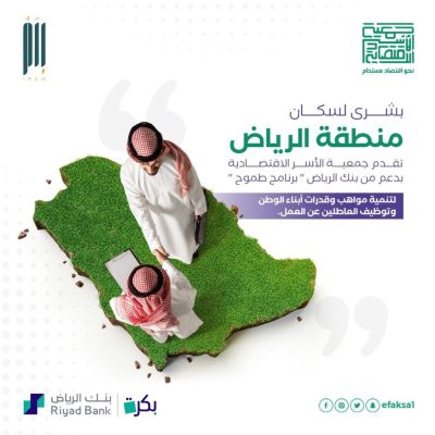 تطلق جمعية الأسر الاقتصادية وبدعم من بنك الرياض، برنامج طموح وهو برنامج تدريبي منتهي بالتوظيف، وذلك بعدد 140 متدرباً من أبناء وبنات الوطن.