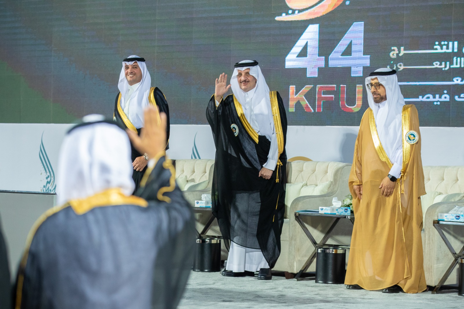 رعى صاحب السمو الملكي الأمير سعود بن نايف بن عبدالعزيز أمير المنطقة الشرقية حفل جامعة الملك فيصل بتخريج الدفعة الرابعة والأربعين من خريجيها، بحضور صاحب السمو الأمير سعود بن طلال بن بدر محافظ الأحساء،مساء أمس.
