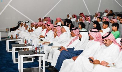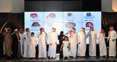 وقبل انطلاق الفقرة المسرحية شاركت الطفلة الكفيفة العازفة ريتاج الزهراني بمعزوفات على آلة الأورج بدأتها بمعزوفة النشيد الوطني ، ثم معزوفة لأغنيتي “عاش سلمان” و”وطني الحبيب” لاقت استحسان الحضور.