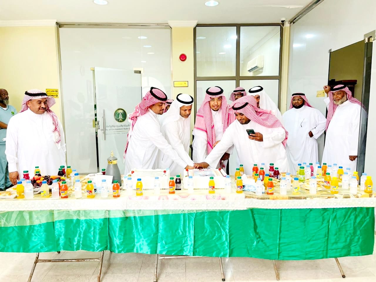 بحضور مدير مكتب وزارة البيئة والمياه والزراعة بمحافظة القنفذة المهندس حسن المعيدي ، وشهد الحفل تبادل التهاني والتبريكات بين الحضور كافة بهذه المناسبة السعيدة، وتبادل الدعوات الطيبة.