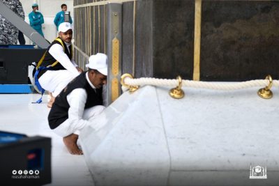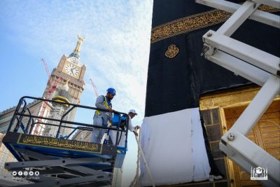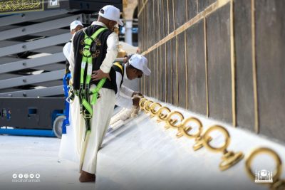 مكة المكرمة – بدأت الرئاسة العامة لشؤون المسجد الحرام والمسجد النبوي ممثلة في مجمع الملك عبدالعزيز لكسوة الكعبة المشرفة فك المذهبات استعداداً لإنزال الثوب القديم، وإكساء الكعبة بثوبها الجديد، جرياً على العادة السنوية، وسط منظومة متكاملة من الخدمات التي تراعي في مخرجاتها أعلى المعايير العالمية.