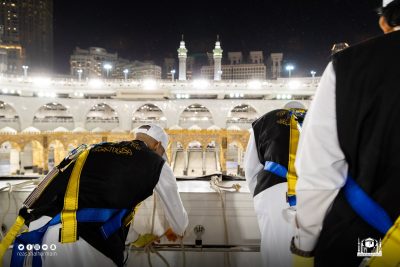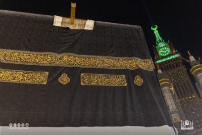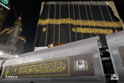 مكة المكرمة – قامت الرئاسة العامة لشؤون المسجد الحرام والمسجد النبوي اليوم بتبديل كسوة الكعبة المشرفة، كما جرت العادة السنوية، وذلك من خلال فريق عمل محدد من مجمع الملك عبدالعزيز لكسوة الكعبة المشرفة، حيث بدأ الفريق بتفكيك الكسوة القديمة وتركيب الجديدة، ثم تثبيتها في أركان الكعبة وسطحها.