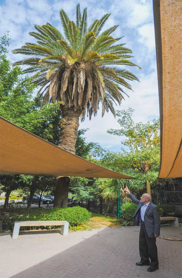 ويضيف “وجدت فى جريد النخيل وسيطاً رائعاً لتجسيد فكرة التنمية الذاتية للقرية المصرية والعربية من الناحية الحضارية والاجتماعية والاقتصادية والبيئية. فهو مورد موجود فى كل محافظات مصر، بإجمالى 12 مليون نخلة إناث. ويرتفع الاجمالي إلي 100 مليون نخلة فى كل الدول العربية. وللنخيل تاريخ طويل مع المصريين فقد استعان القدماء بجذوعه فى عمل سقوف منازلهم ومقابرهم المبنية بالطوب اللبن. كما صنعوا تيجان أعمدة معابدهم على شكل قمة النخلة بما تحمله من جريد نخيل”.