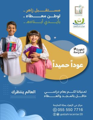 وأضاف “البركاتي” في بيان: “دورنا وواجبنا بمركز الزهراء الاجتماعي بمكة المكرمة ومنتدياته وفرقه التطوعية “جمعية مراكز الأحياء”، القيام بمساهمة مجتمعية، لإثراء العودة للدراسة، عبر إطلاق حزمة برامج ومبادرات وفعاليات”.