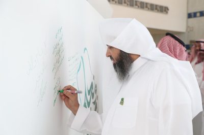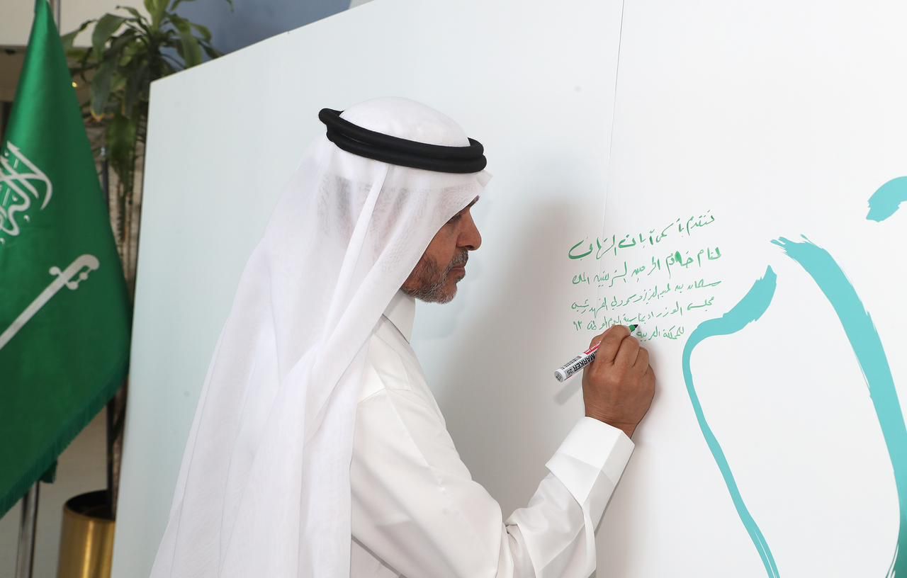 وشملت الفعالية تسطير عبارات الانتماء والولاء على لوحة جدارية تذكارية وضعت في بهو المبنى الرئيسي للوزارة، إضافة إلى توزيع بروش بتصميم هوية اليوم الوطني، وتقديم القهوة السعودية، وتوزيع دروع وشالات تذكارية بهذه المناسبة للموظفين والموظفات، وعدد من الفعاليات المصاحبة.