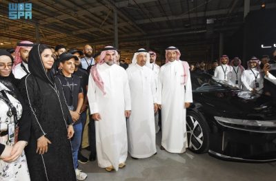 دشنت مجموعة “لوسِد جروب” اليوم منشأة “AMP-2” لإنتاج السيارات الكهربائية بمدينة الملك عبدالله الإقتصادية برابغ في إنجازٍ تاريخي للمملكة والتي تعمل في المرحلة الأولى على تجميع 5,000 سيارة “لوسِد” سنوياً وسط توقعات إنتاج 155,000 سيارة كهربائية سنوياً عند اكتمال مراحل المنشأة .