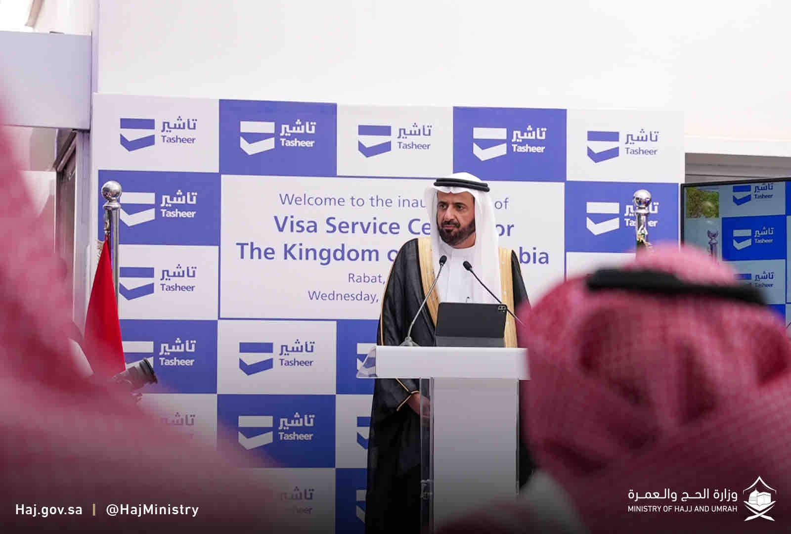افتتح معالي وزير الحج والعمرة الدكتور توفيق بن فوزان الربيعة مركز خدمات التأشيرات السعودية (تأشير) التابع للشركة السعودية لحلول التأشيرات والسفر بالعاصمة المغربية الرباط الذي يهدف لتسهيل إجراءات الحصول على تأشيرات الدخول إلى المملكة العربية السعودية من خلال استلام طلبات الحصول على تأشيرة دخول وتسجيل السمات الحيوية ومعالجة الطلب حتى إصدار التأشيرة ويتميز مركز خدمات التأشيرات السعودية (تأشير) بموقعه على شارع محمد الخامس بمنطقة السويسي في العاصمة الرباط مما يسهم في تقديم خدماته بكل يسر وسهولة للمواطنين والمقيمين في المملكة المغربية هذا وتصل الطاقة الاستيعابية للمركز إلى 250 متقدم يوميًا كما تعتزم الشركة افتتاح مراكز إضافية في المدن المغربية الأخرى تسهيلا لخدمة المزيد من المراجعين .
