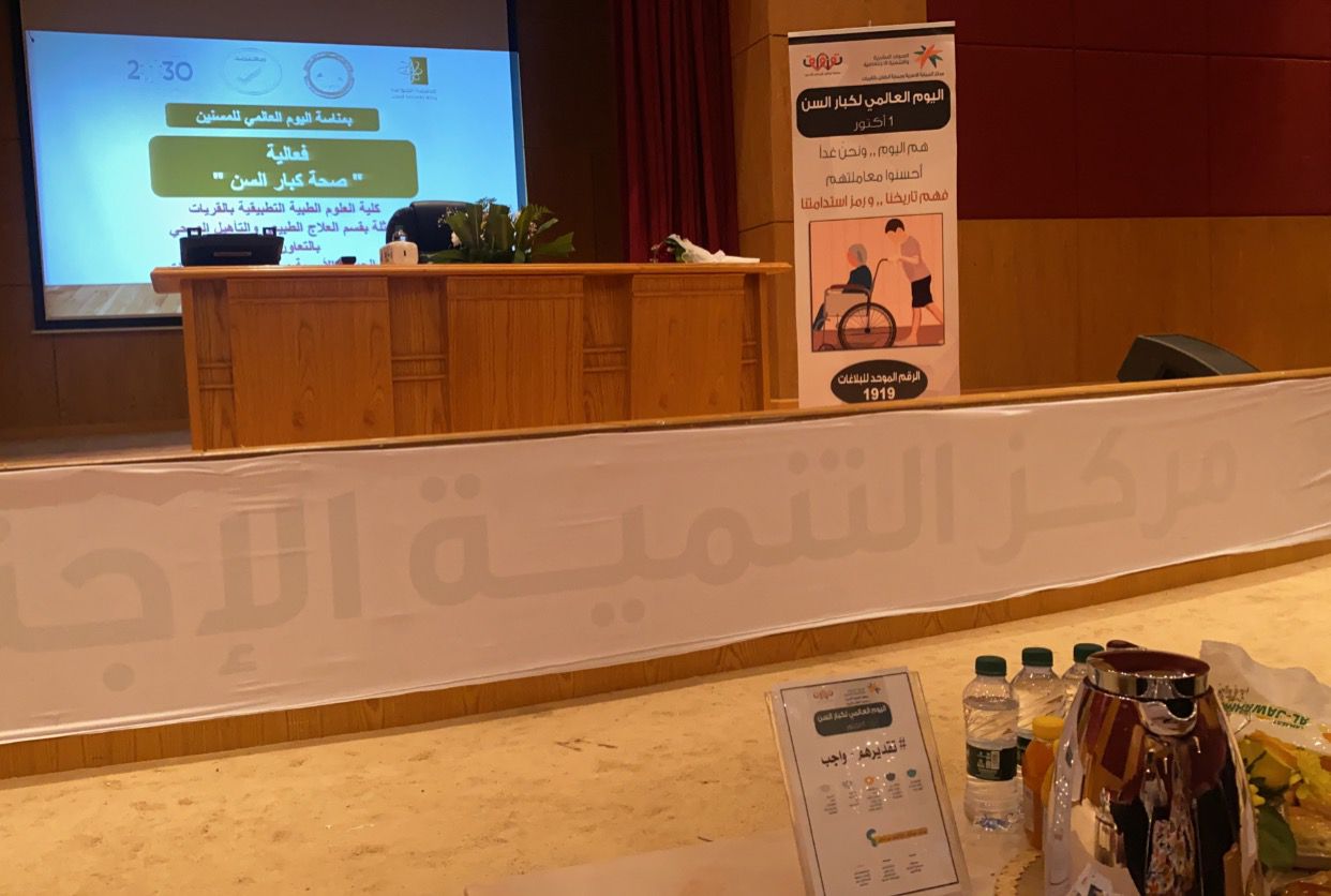 أقام مركز الحماية الاسرية بالقريات بالتعاون مع الكليه الطبيه التطبيقيه للبنات بالقريات محاضرة خاصة بكبار السن بمناسبة اليوم العالمي لكبار السن تحت عنوان محاضرة (صحة كبار السن ) وفي الختام قدمت رئيسة المركز شكر خاص للكلية الطبيه التطبيقيه على ماقدموه من جهود لإنجاح هذا اليوم العالمي.