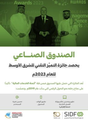 الصندوق الصناعي يحصد جائزة التميز التقني للشرق الأوسط لعام 2023 م