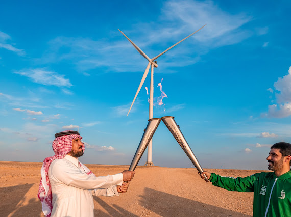 واتجهت الشعلة بعد ذلك إلى الطاقة المتجددة، حيث حمل الشعلة عبد المجيد الرويلي لاعب المنتخب السعودي لكرة القدم.