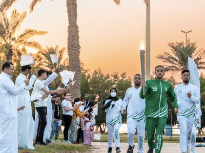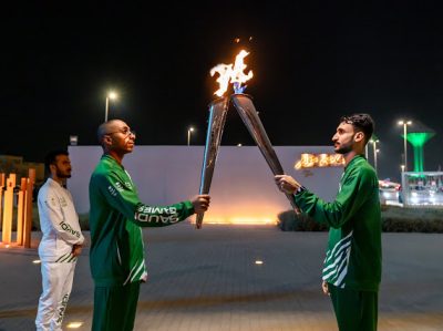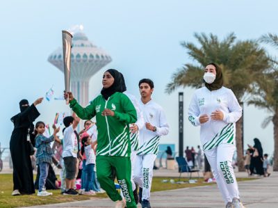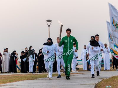 وفي أجواء احتفالية، بدأت جولة الشعلة في الواجهة البحرية لكورنيش الدمام، حيث حمل الشعلة محمد مصطفى ال نصفان لاعب الاسكواش والحائز على الميدالية الذهبية ببطولة الدنمارك للشباب عام 2022، والميدالية الذهبية لبطولة قطر الدولية للشباب التابعة للاتحاد الآسيوي في مارس 2023، كما حمل الشعلة بطل السباحة علي عيسى، والذي أحرز ميداليتين ذهبيتين في دورة الألعاب السعودية العام الماضي، وميدالية ذهبية وبرونزية في دورة الألعاب الخليجية في الكويت عام 2022، وصاحب الرقمين القياسيين السعوديين في سباقات 100 متر و200 متر ظهر.